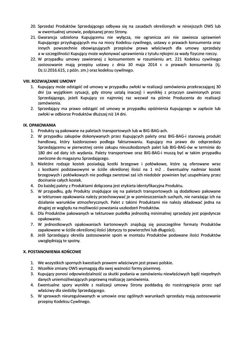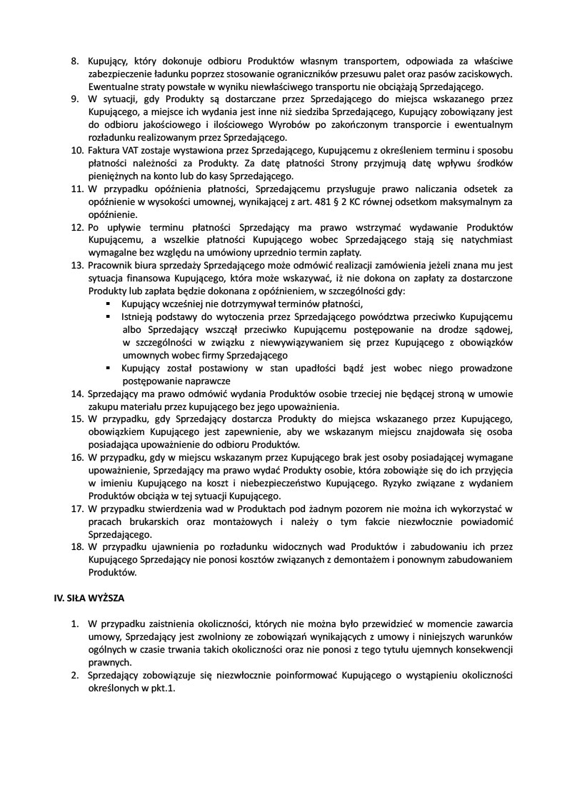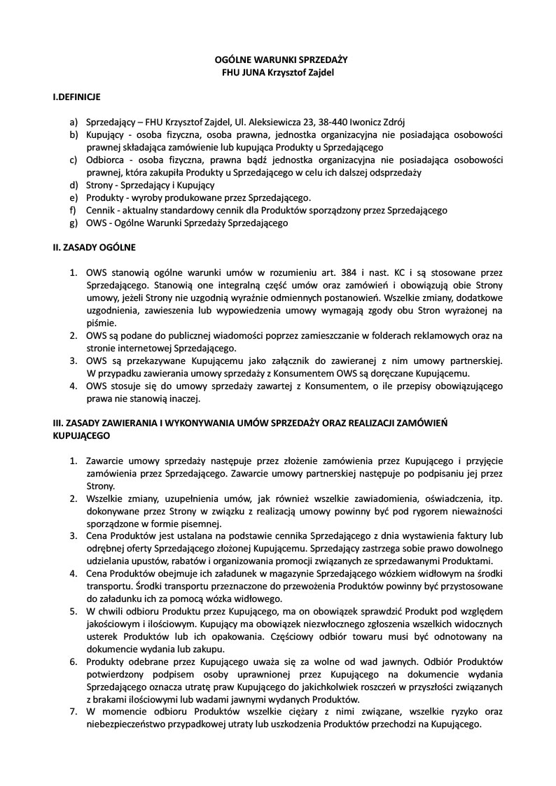 OGÓLNE WARUNKI SPRZEDAŻY