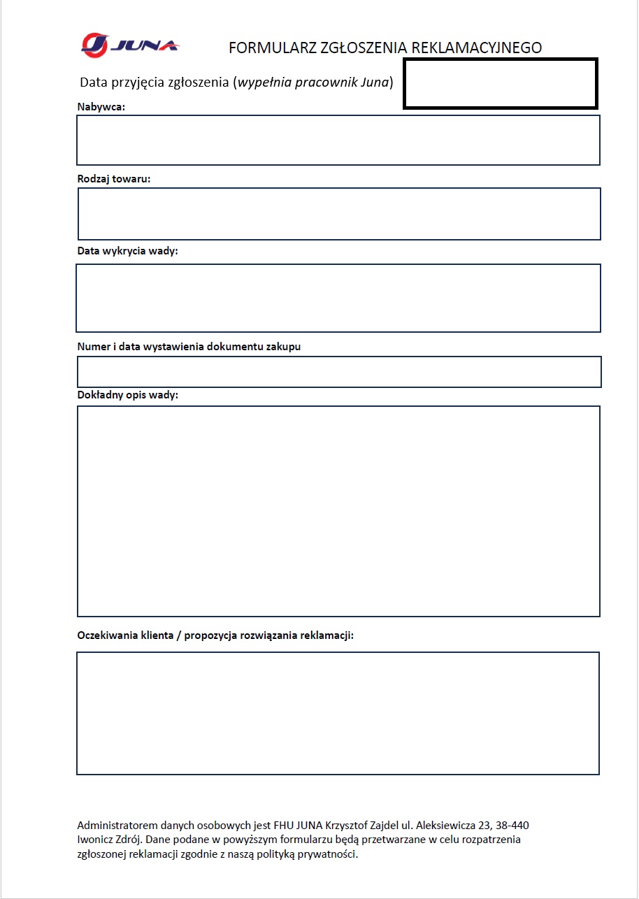 Formularz zgłoszenia reklamacyjnego